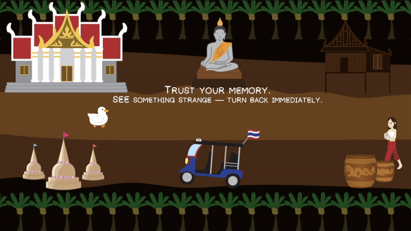 Inspired by horror game Exit8 but with a cute little duck in a haunted village in Thailand!